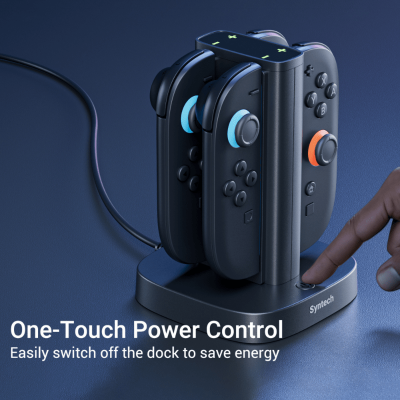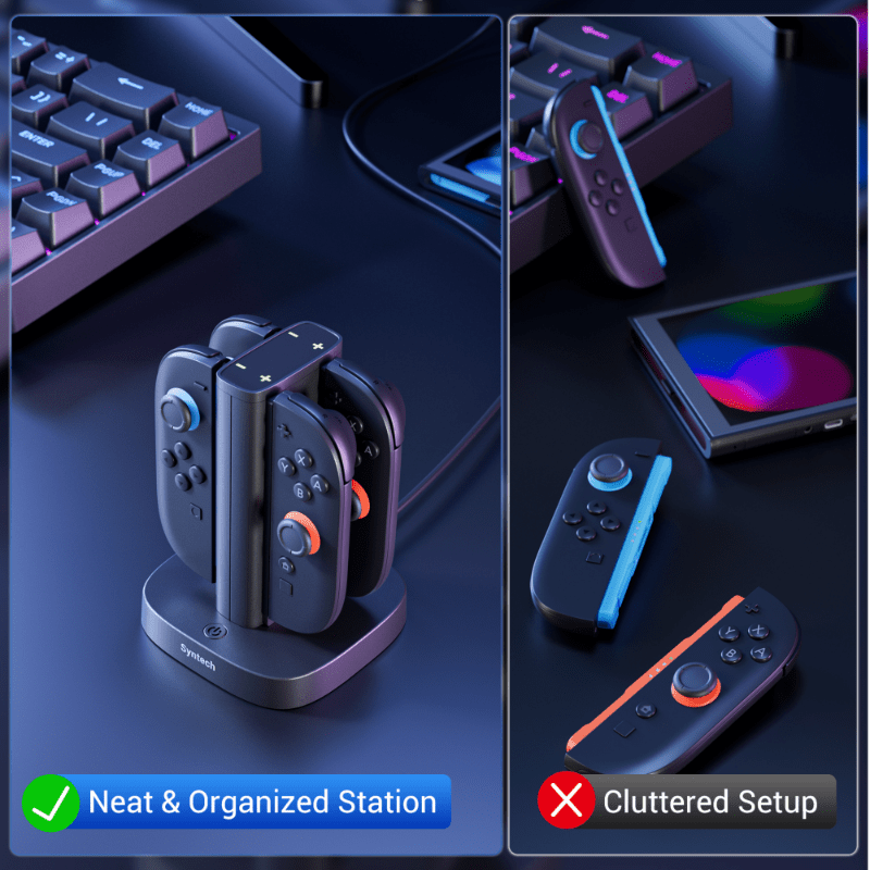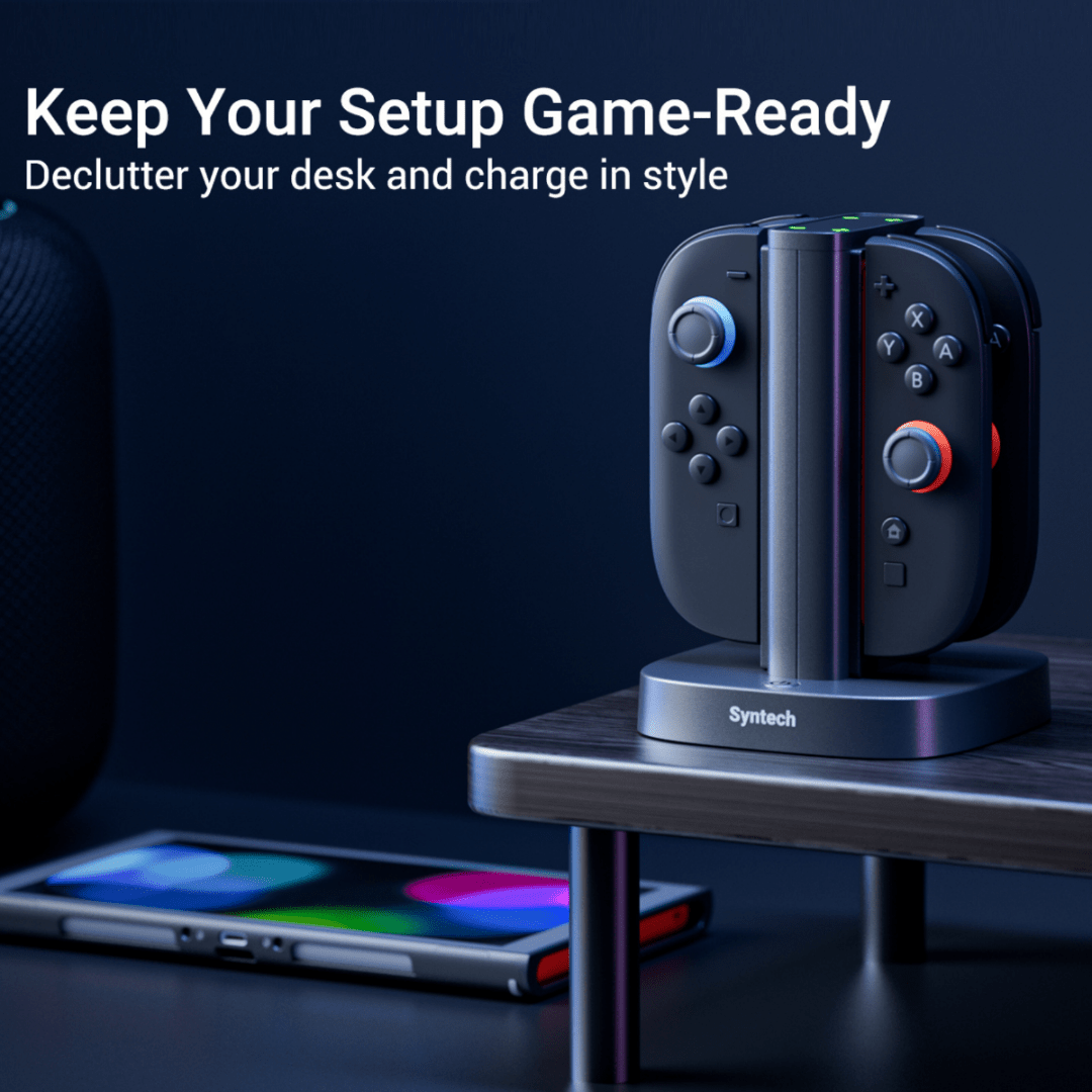 Ohranite svoje krmilnike urejene in vedno pripravljene s Syntech Premium Charger Dock za Nintendo Switch 2. Kompaktna in elegantna polnilna postaja omogoča polnjenje do 4 Joy-Conov hkrati za hitro, varno in priročno polnjenje vsakega posebej.